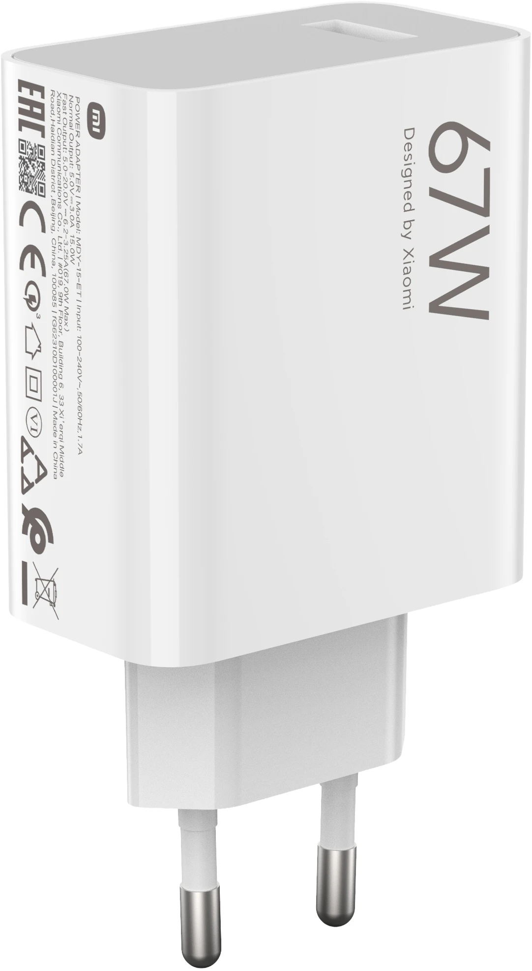 Das Ladegerät Xiaomi 67 W Charging Combo ist ein Lademodell mit einem USB-Anschluss und USB-C-Kabel. Intelligente Geräte-Identifikation zur Anpassung des maximalen Stroms des angeschlossenen Geräts